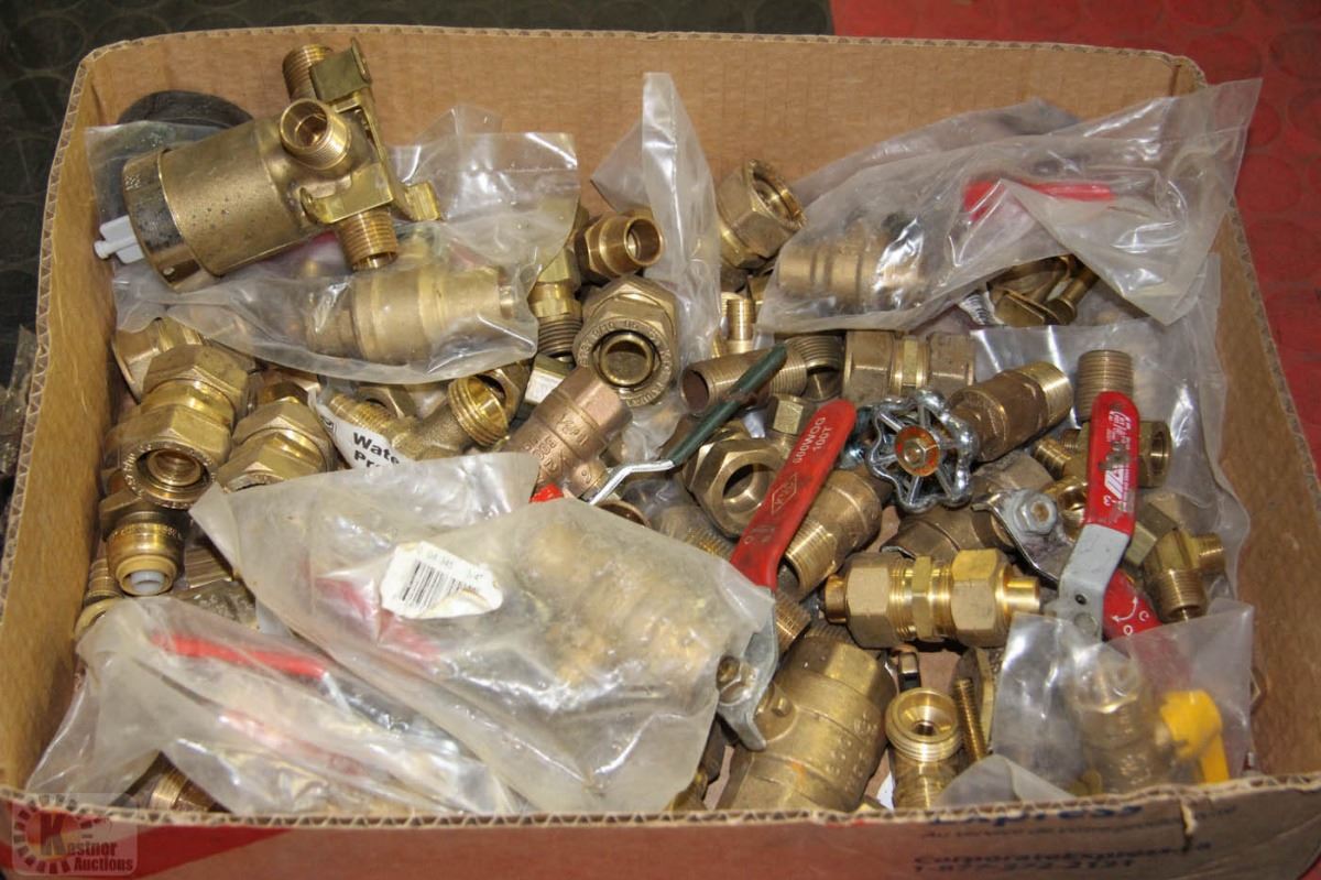 LARGE BOX OF BRASS FITTINGS, TAPS & VALVES