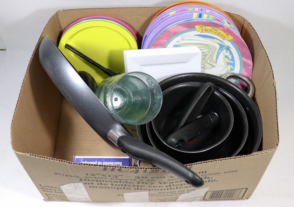 FOR CAMPING OR CABIN - POTS W/REMOVEABLE HANDLES, PAN, PLATES, CUPS, CUTLERY, ETC. - GENERAL, OUTDOORS