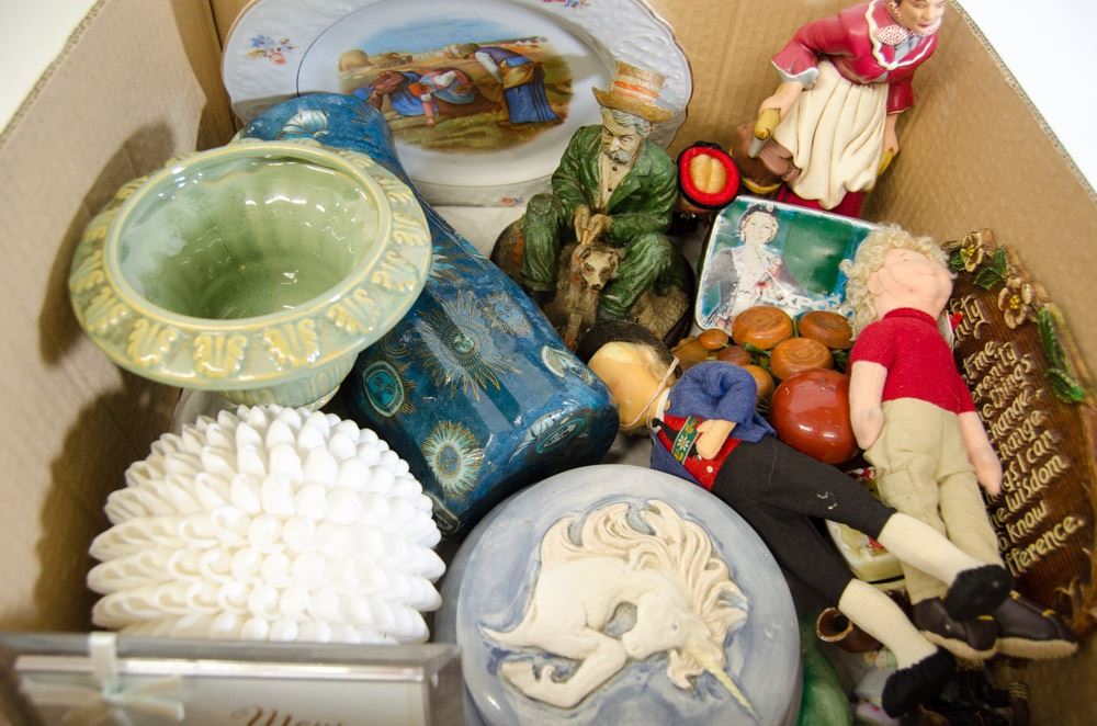 LARGE BOX OF COLLECTIBLES, VINTAGE AND