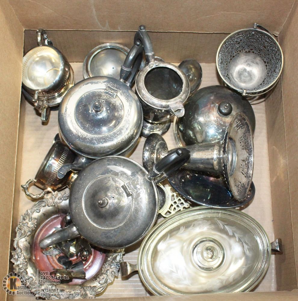 LARGE BOX OF ESTATE SILVERPLATED SERVERS
