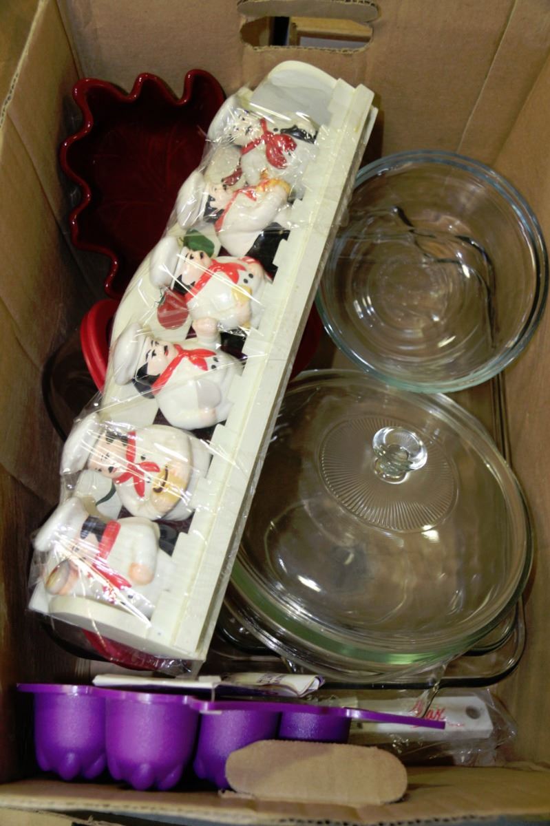 LARGE BOX OF GLASS BAKING PANS, "CHEF"