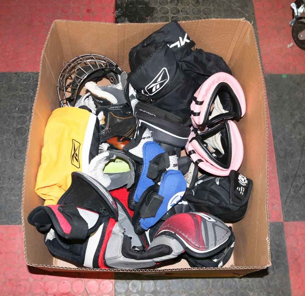 MEDIUM INCLUDES SHOULDER PADS, PANTS, SKATES, GLOVES, CAGE, SOCKS, ETC. - GENERAL, SPORTS