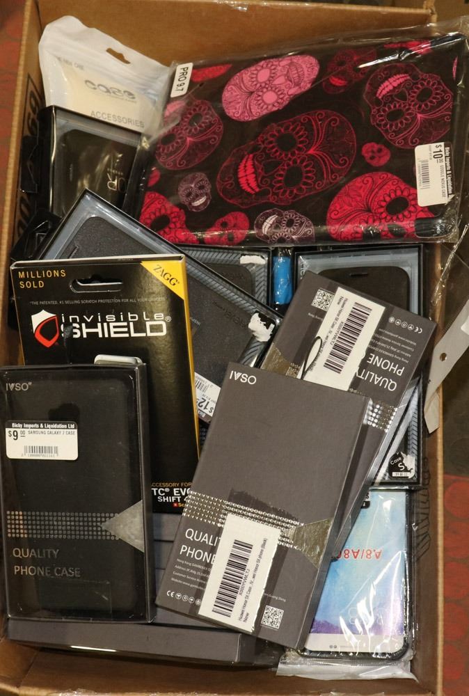 LARGE BOX OF MIXED TYPES & BRANDS CELL PHONE CASES