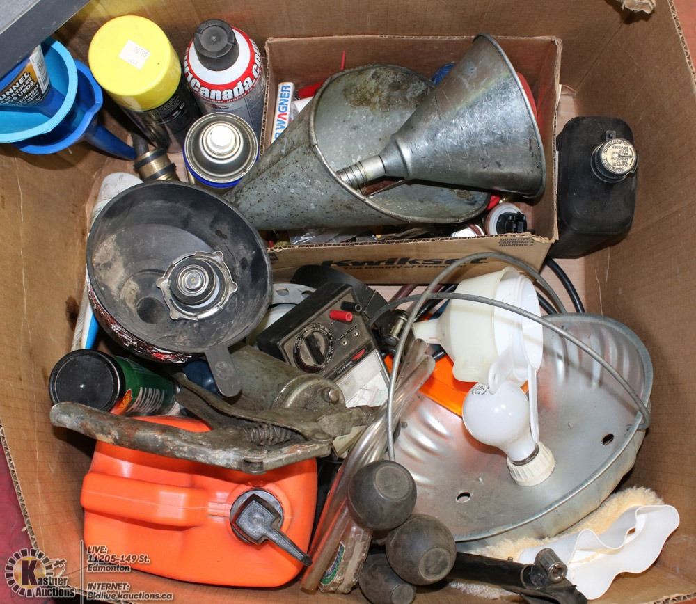 FUNNELS, GREASEGUN, BULBS, FESTER, NEW OIL, CLEANERS, ETC.