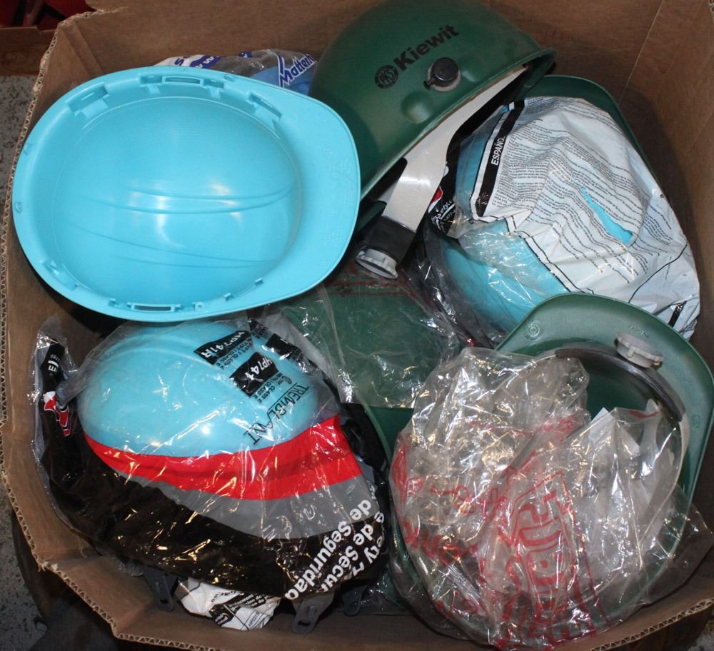 LARGE BOX OF VARIOUS NEW HARD HATS