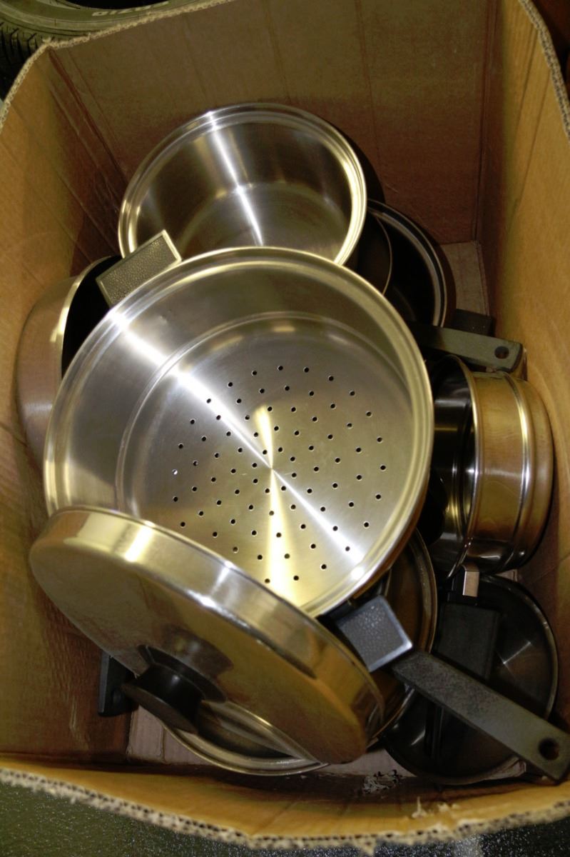 LARGE BOX W/14 PIECE POTS/PANS & LIDS