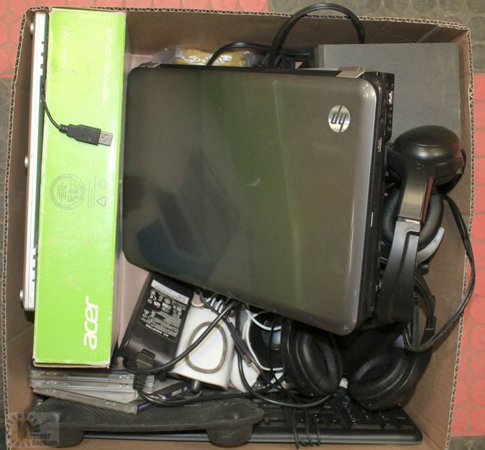 3 LAPTOPS (DELL, HP & ASPIRE)-SOME NEED TLC, WIRELESS HEADPHONES, LOGITECH SPEAKER SETS, KEYBOARD, COOLERS, ETC.