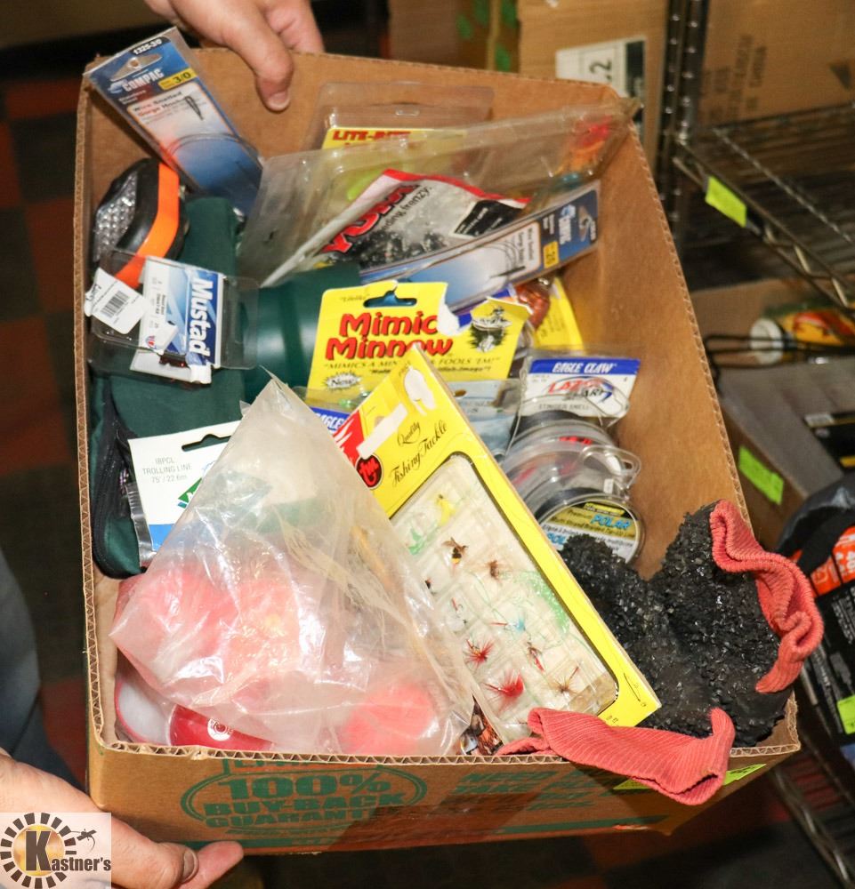 TACKLE INCL. - FLOATS, LURES, LINE, WAIST POUCH, BAIT, RUBBERIZED GRIPPER GLOVES, ETC. - GENERAL, OUTDOORS