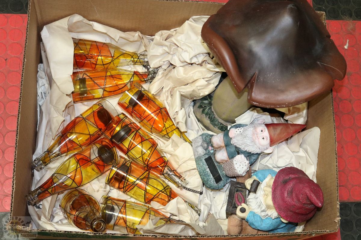 GNOME (9" TALL) GARDEN SET, & AN 18-PC STAINED GLASS HANGING T-LIGHT HOLDER SET