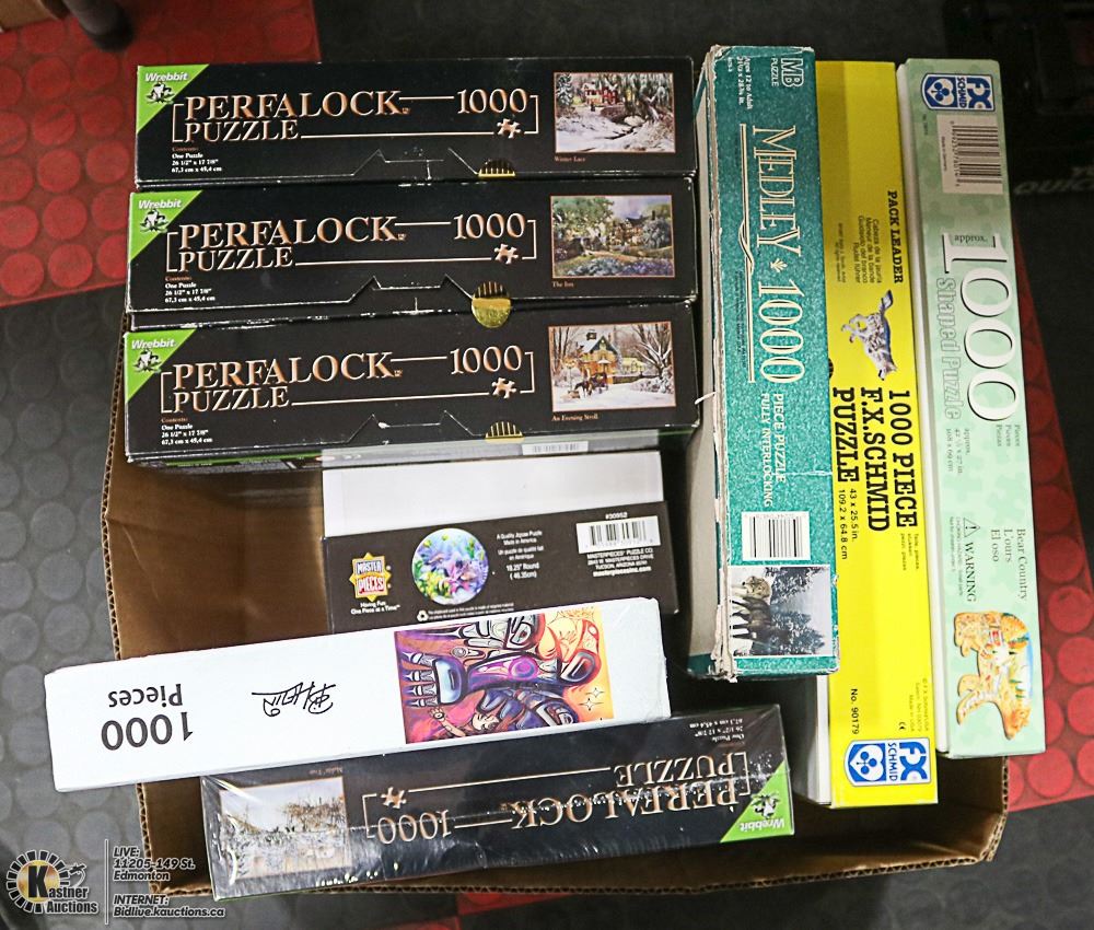 LARGE BOX WITH 9 PUZZLES - 8X 1,000 PC AND