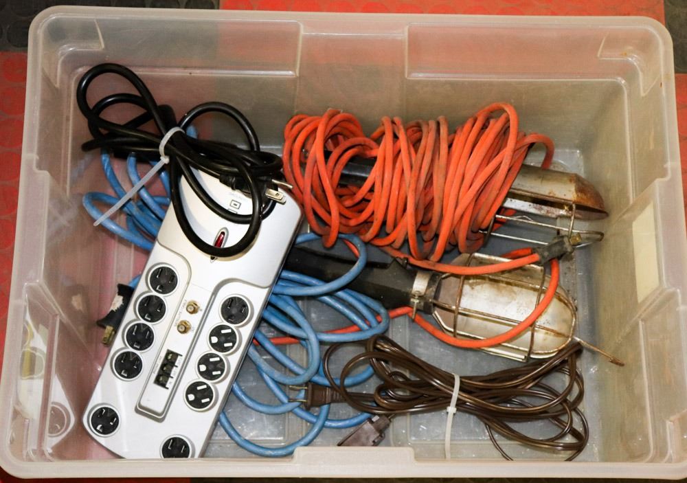 SURGE PROTECTOR, 2 MECHANICS TROUBLE LIGHTS (LONG CORD AND SHORT CORD), 30 FT. OUTDOOR 3-TAP CORD, LONG INDOOR CORD - ELECTRONICS