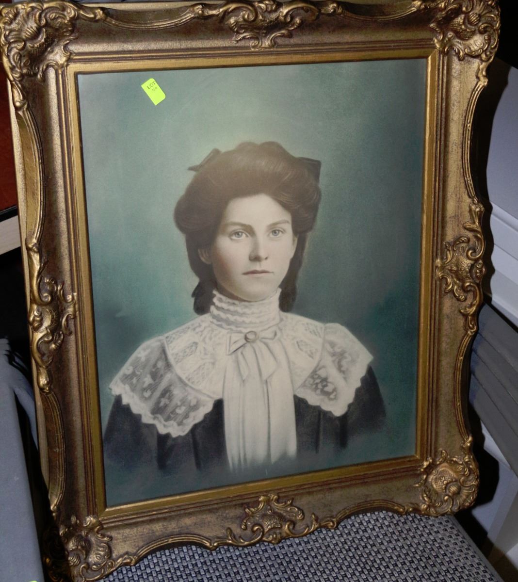 LARGE ESTATE GOLD TONE FRAME LADY PICTURE