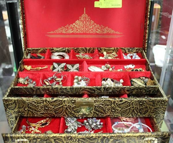 LARGE ESTATE JEWELLERY BOX W CONTENTS