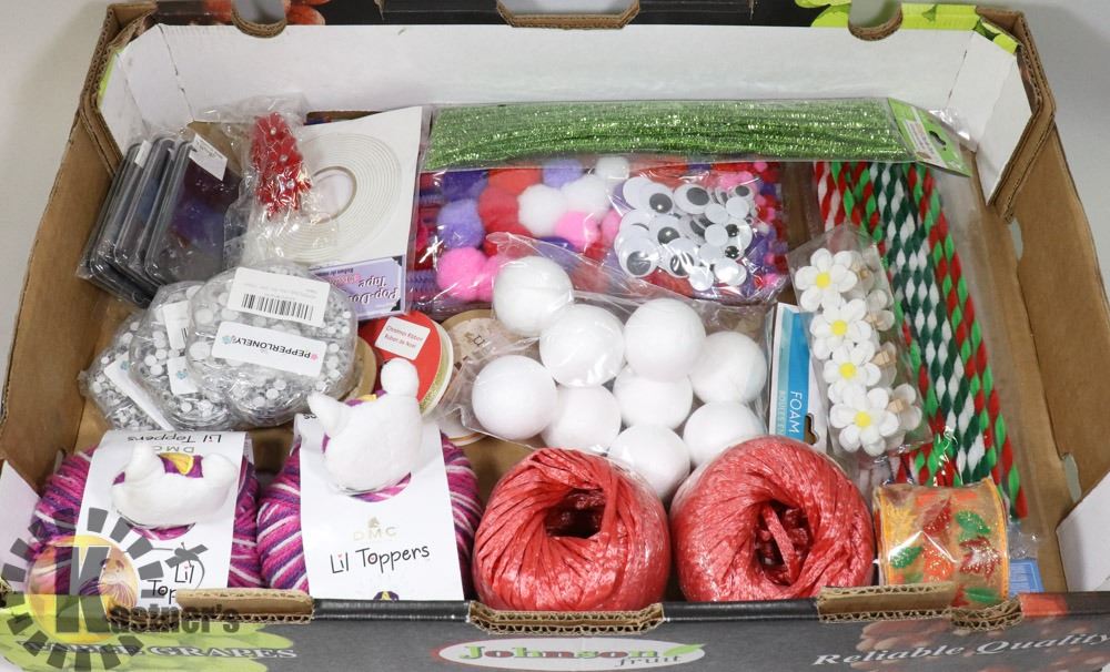 LARGE FLAT OF ASSORTED CRAFTING SUPPLIES