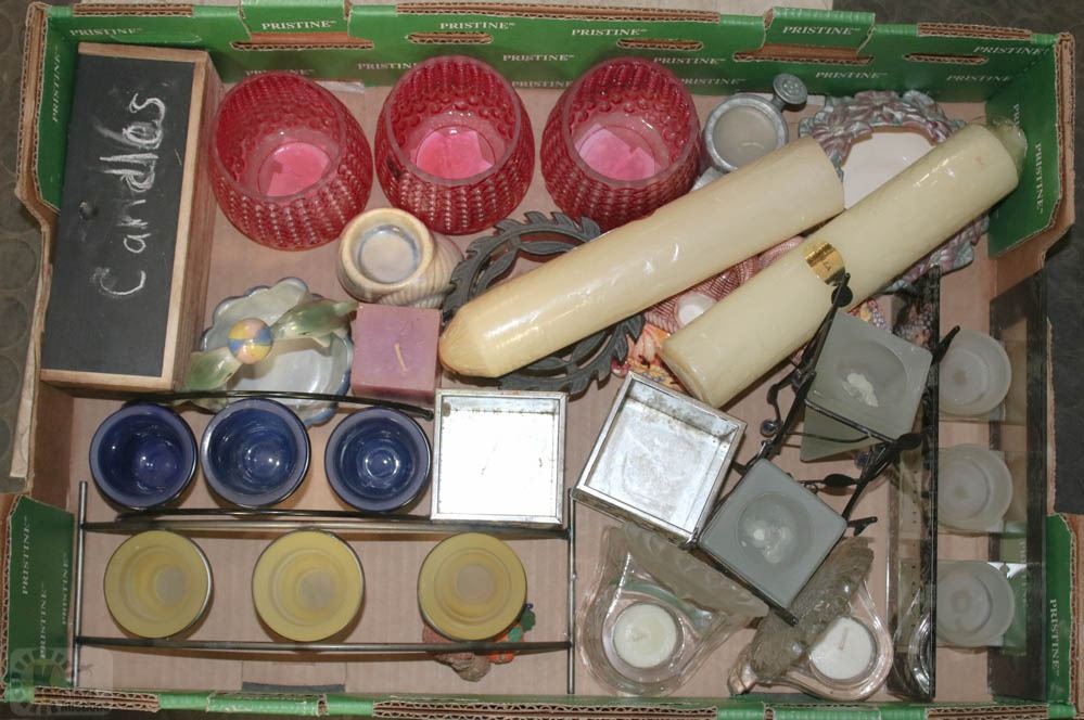 CANDLE BOX WITH SCENTED CANDLES PARTYLITE, CAST IRON ETC.