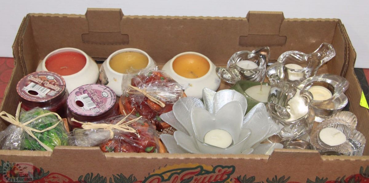 LARGE FLAT OF CANDLE HOLDERS & CANDLES