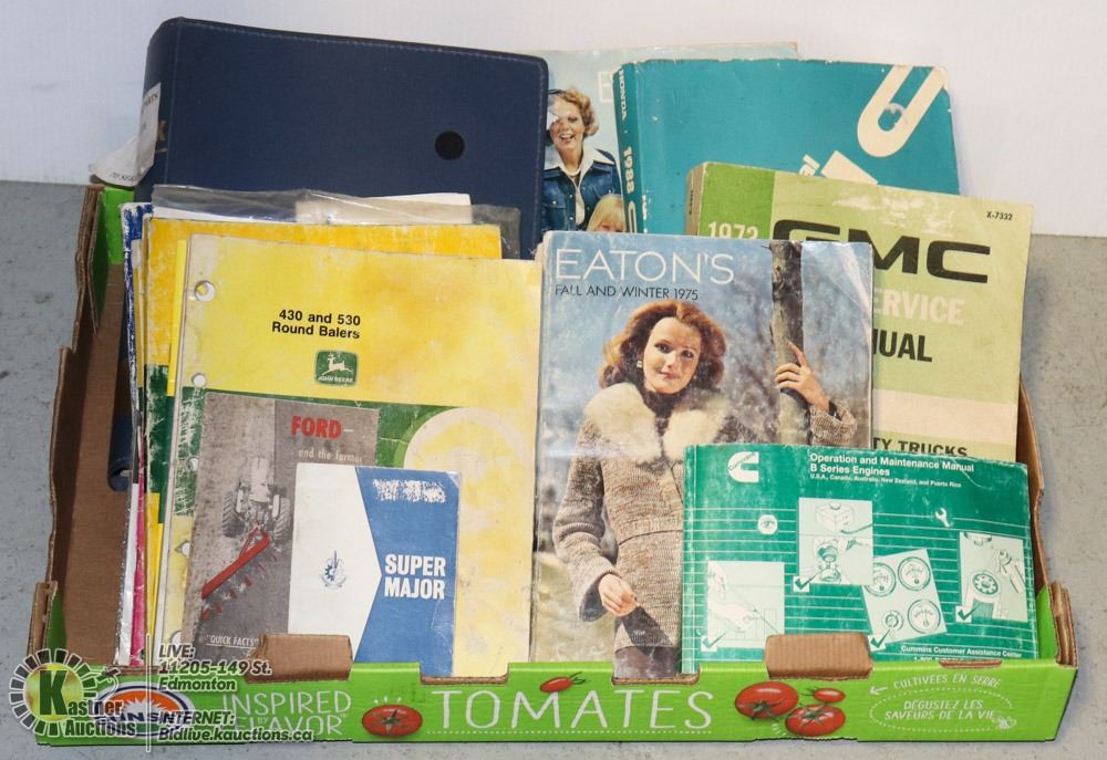 MANUALS, INCLUDES 1975 EATONS, JOHN DEERE, FORD, HONDA, AND OTHERS