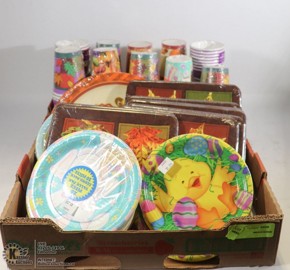 LARGE FLAT OF NEW ASSORTED PARTY PLATES & CUPS,