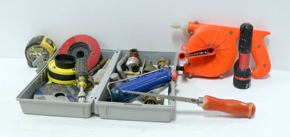 INCL. TORCHES, TIPS, 2 NEW ZIP CUT DISCS, FLAPPER DISC, JACK RABBIT PUMP, ETC. - TOOLS