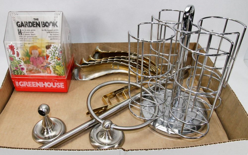 SET OF 4 HOOKS, ONE MINI GREENHOUSE WITH INSTRUCTION ON GROWING THINGS, BATHROOM SET, TASSIMO POD HOLDER