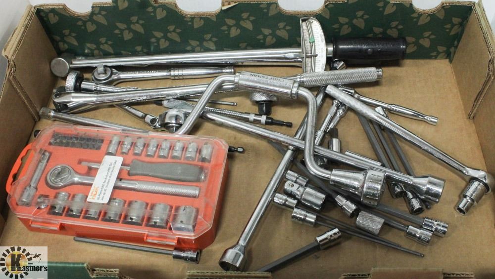AND MECHANICS ACCESSORIES INCL. TORQUE WRENCH 1/4" & 3/8", SWINGARM, RATCHETS 1/4", 3/8" AND 1/2" DRIVES AND ADAPTORS, ETC. - TOOLS