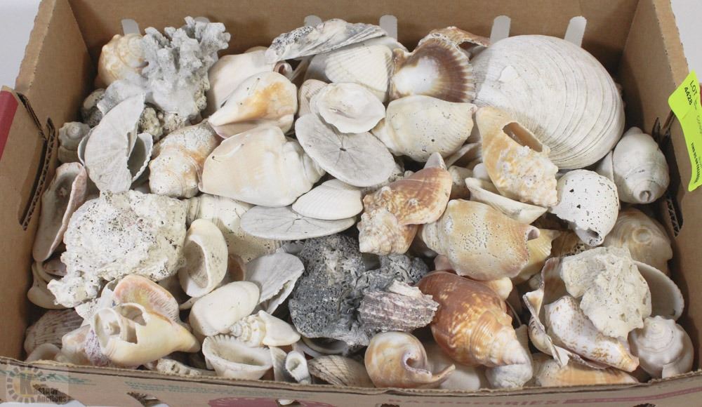 LARGE FLAT WITH ASSORTED SEA SHELL COLLECTION