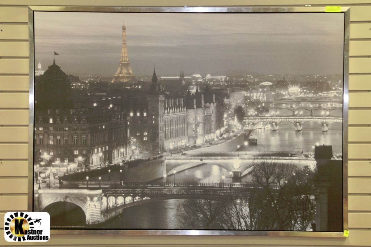LARGE FRAMED DOWNTOWN VIEW OF PARIS& EIFFEL TOWER