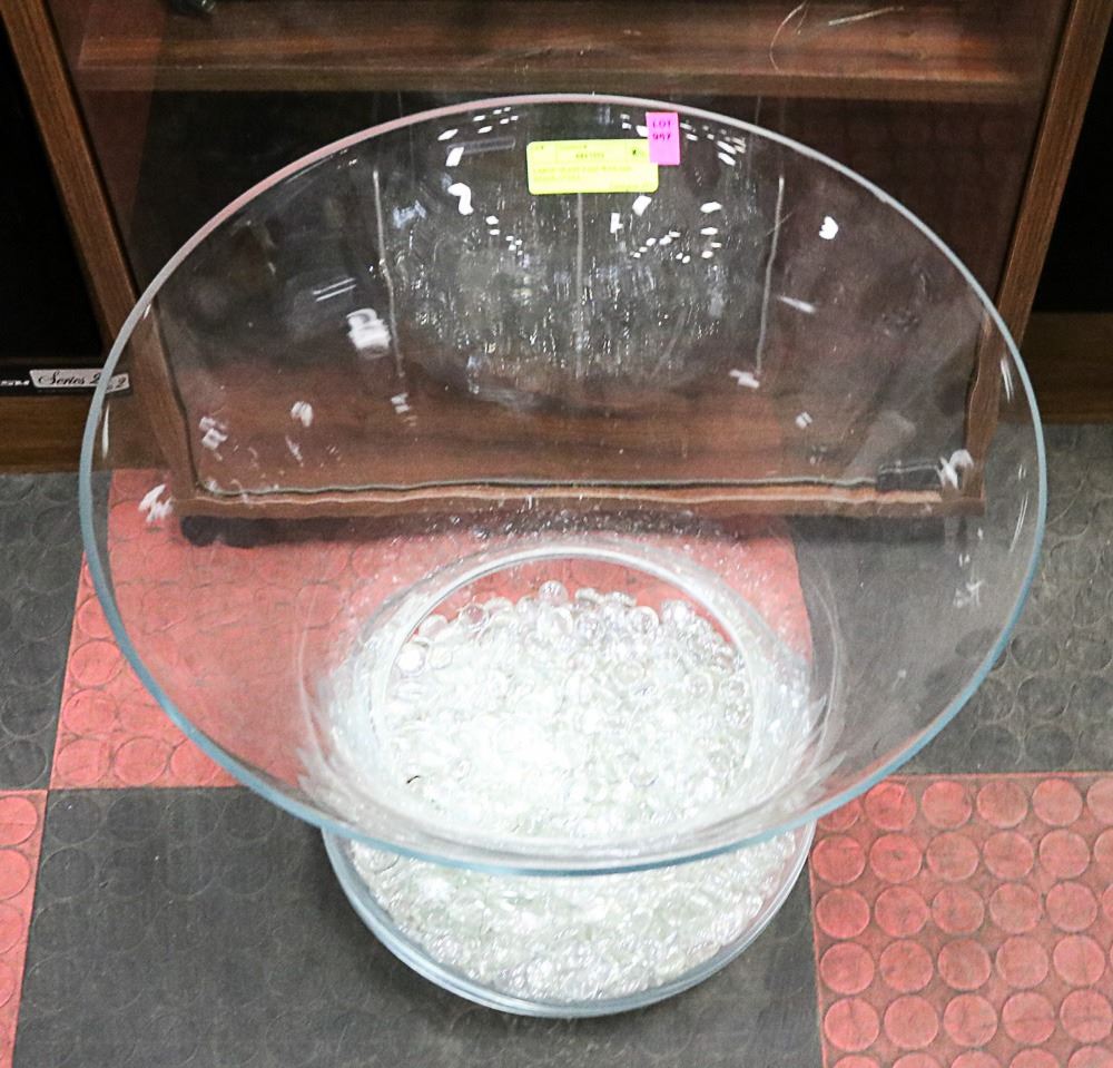 LARGE GLASS VASE W/GLASS BEADS-17"DIA