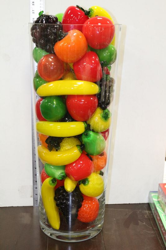 LARGE GLASS VASE W GLASS FRUITS