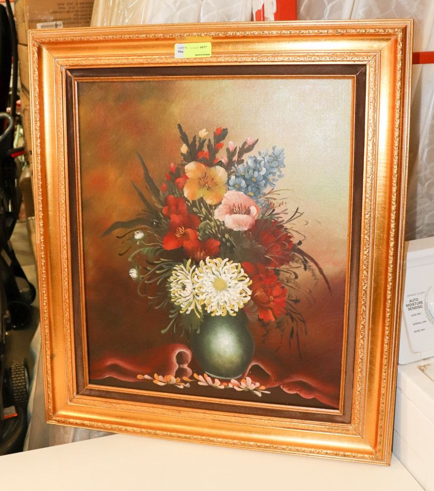 LARGE GOLD TONE FRAMED OIL ON CANVAS
