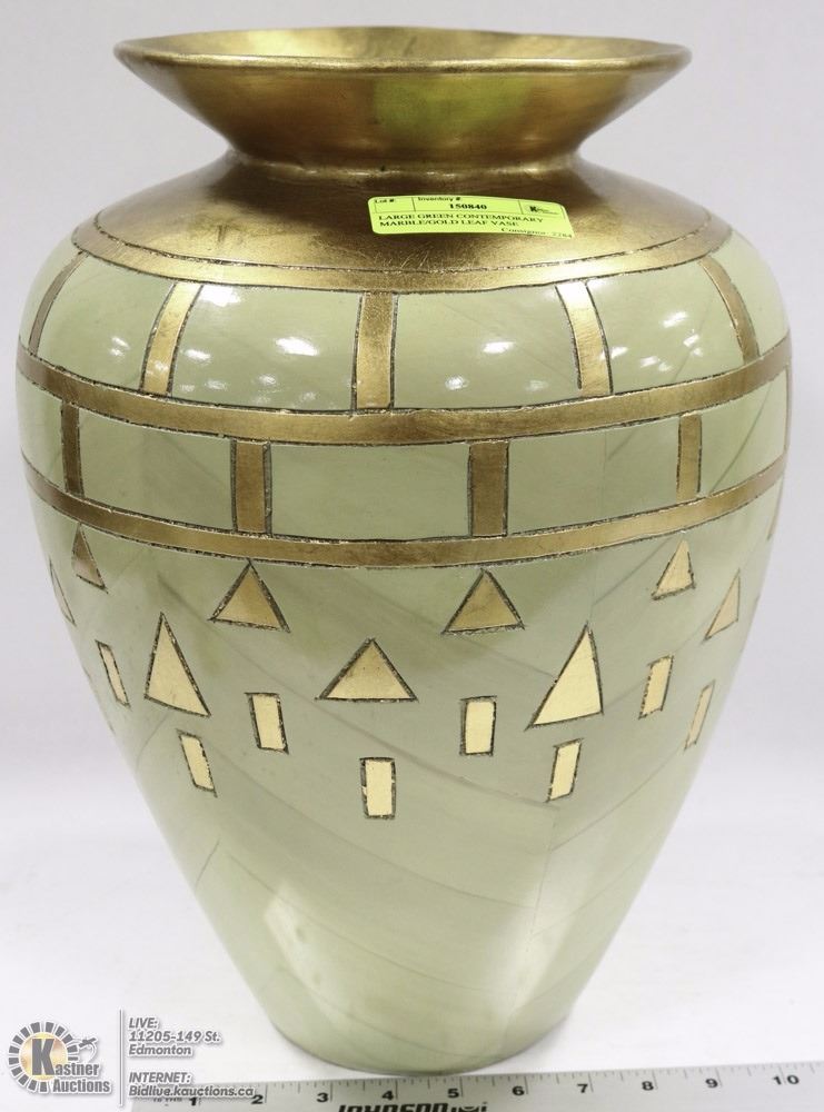 LARGE GREEN CONTEMPORARY MARBLE/GOLD LEAF VASE