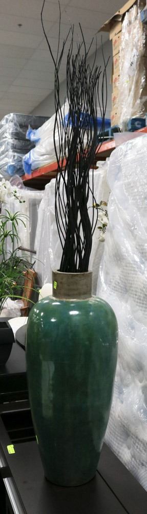 LARGE GREEN SHOWHOME VASE WITH ARTIFICIAL FOLIAGE