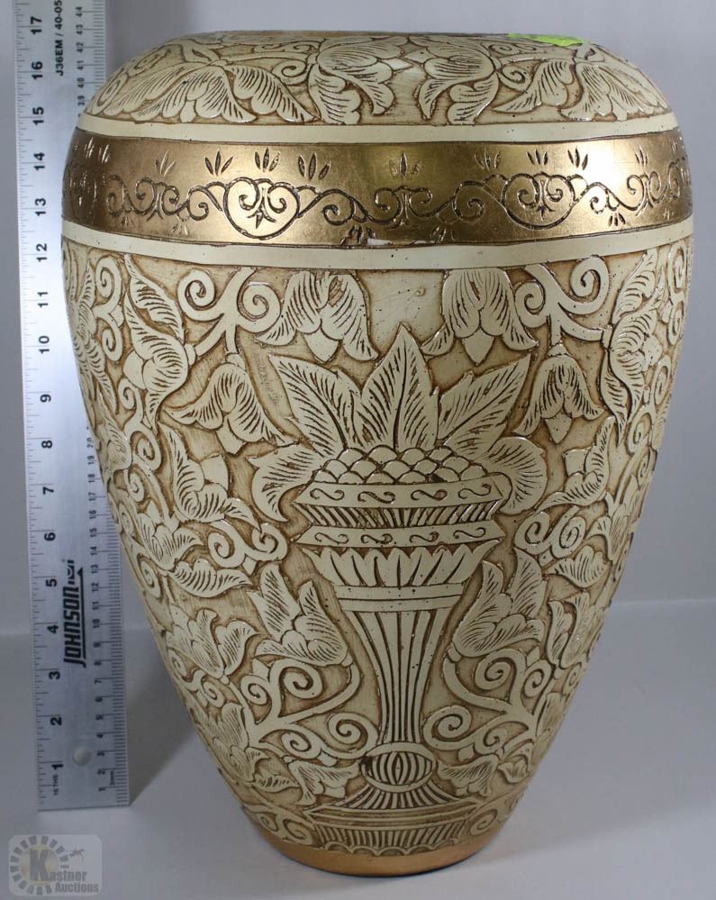 LARGE HANDCRAFTED GOLD LEAF PORCELAIN VASE 16"H