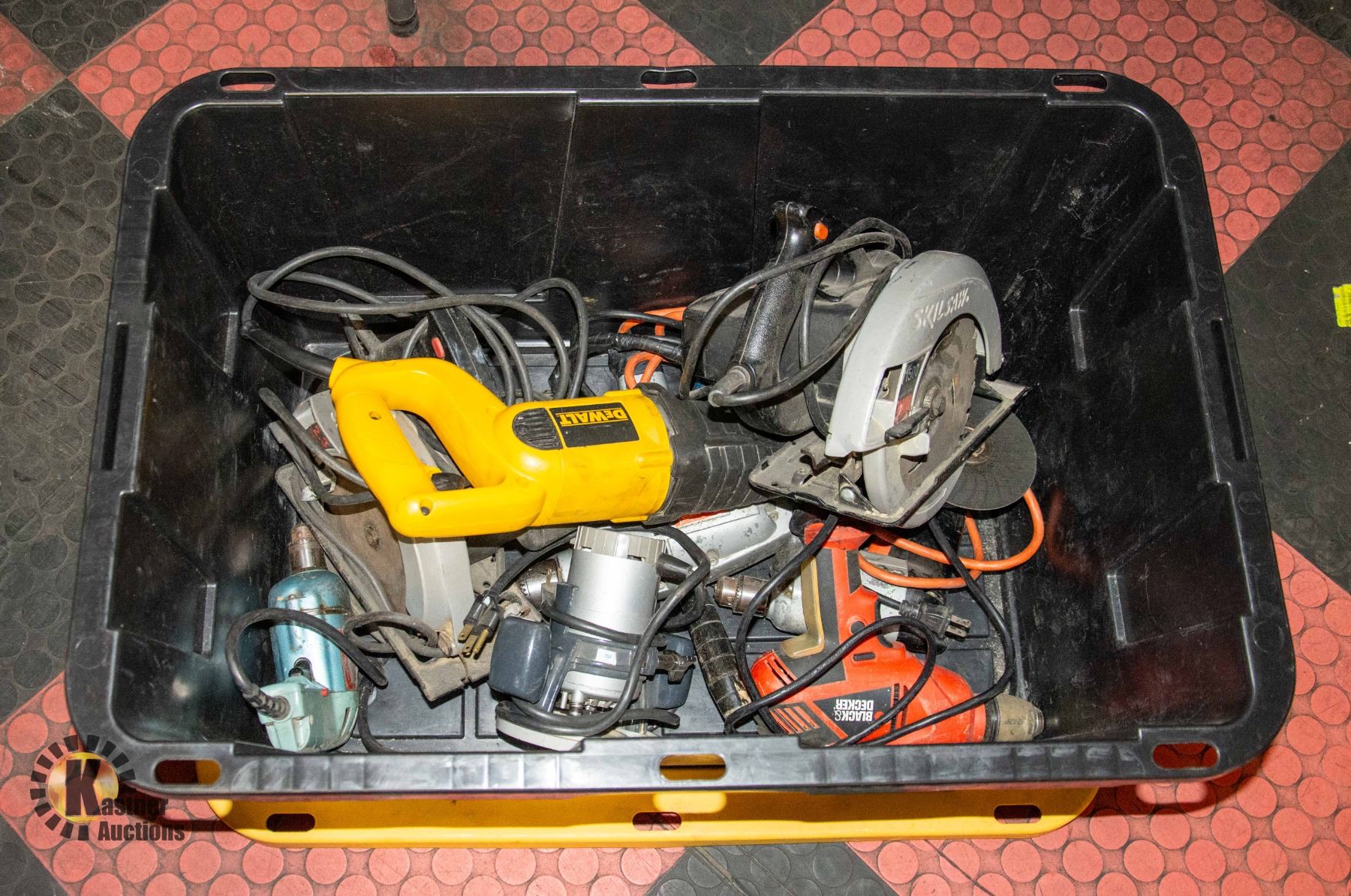 ASSORTMENT OF ESTATE POWER TOOLS - THESE TOOLS ARE UNTESTED - DRILLS, SAWS, SAWZALL, GRINDER, ETC. **ALL ITEMS MUST BE REMOVED BY 5PM SATURDAY, FEBRUARY 24TH 2024. ALL REMAINING ITEMS WILL BE SUBJECT TO A $6.00 PER DAY STORAGE CHARGE. ANY ITEMS REMAINING AFTER MONDAY, MARCH 11TH, 2023 WILL BE CONSIDERED FORFEITED. NO REFUNDS WILL BE ISSUED FOR FORFEITED ITEMS. TO SCHEDULE A PICK UP APPOINTMENT CLICK HERE