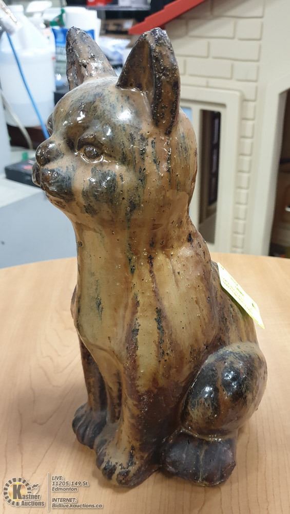 LARGE HEAVY POTTERY CAT VARIOUS BROWNS GLAZED,