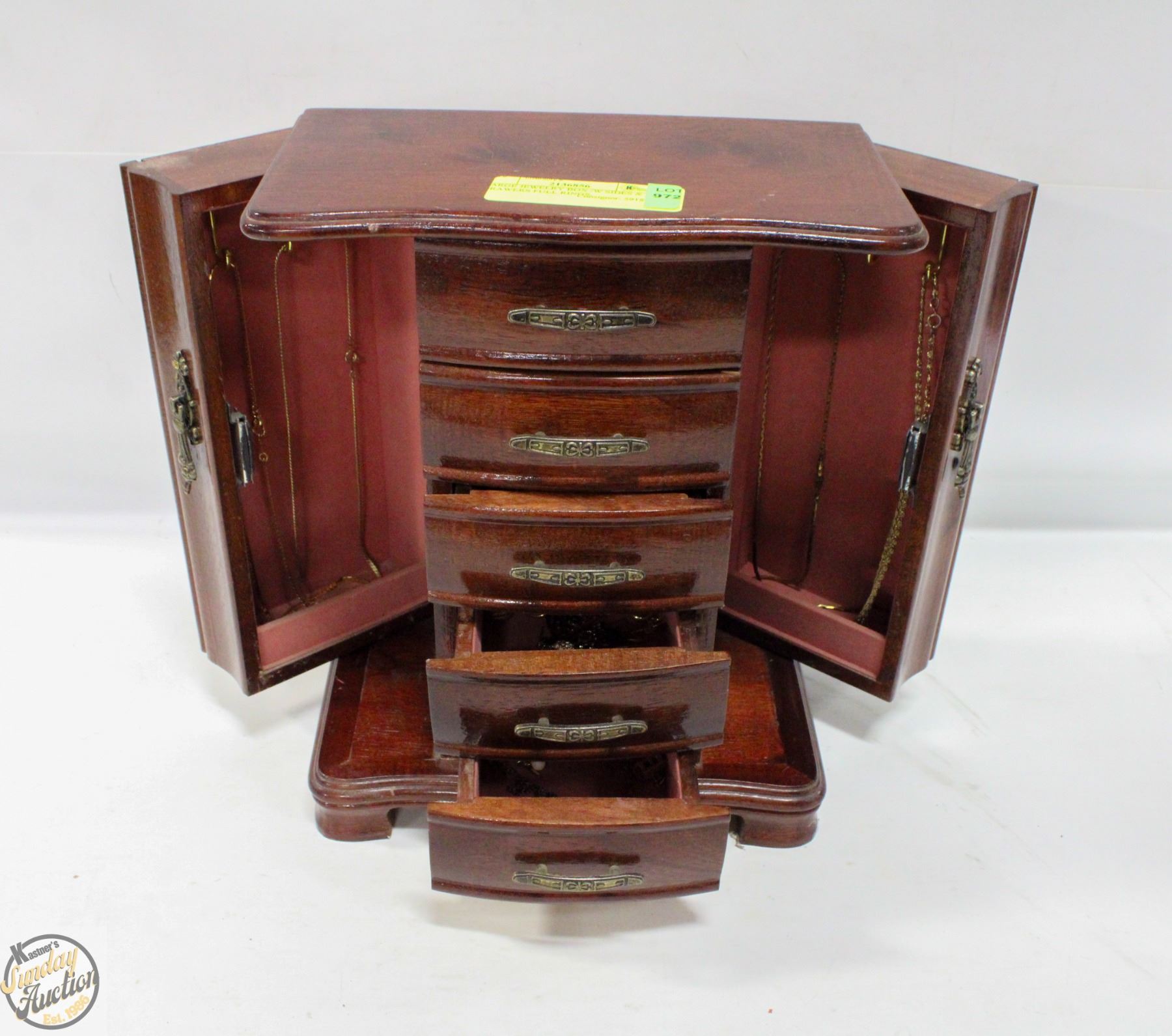 LARGE JEWELRY BOX /W SIDES & DRAWERS FULL RINGS,