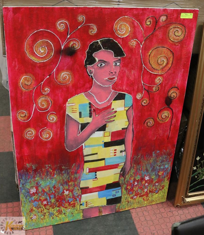 LARGE LADY IN RED OIL PAINTING - 4 FEET BY 3 FEET