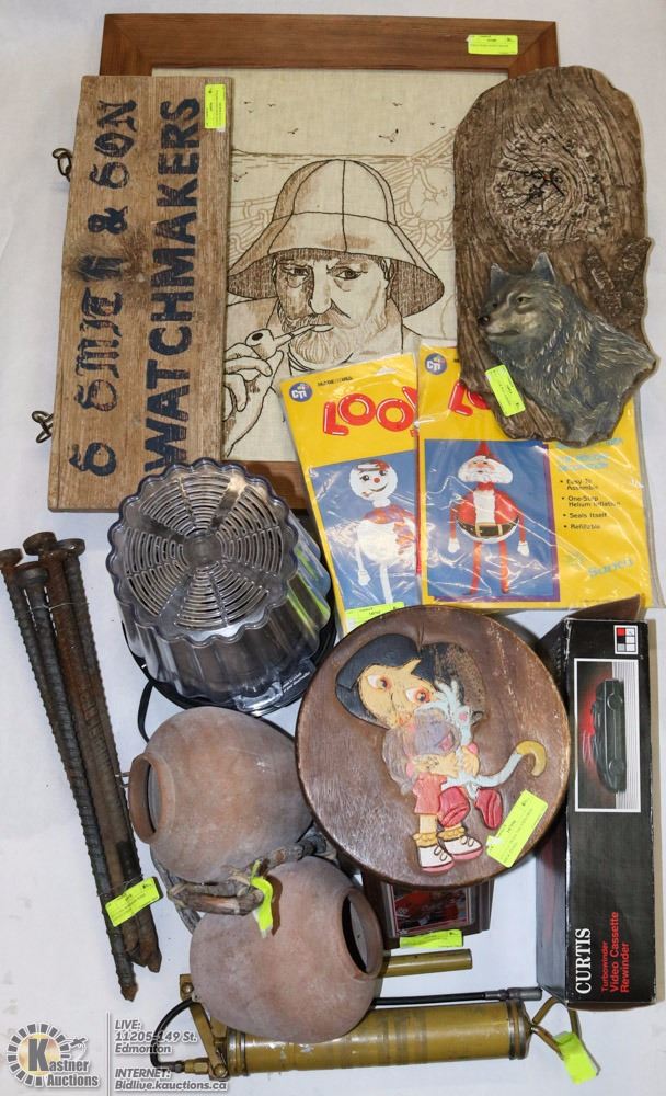 DORA STOOL, VHS REWINDER, ERIC LINDROS PICTURE, GARDEN SPIKES, GREASE GUN, AND MORE!