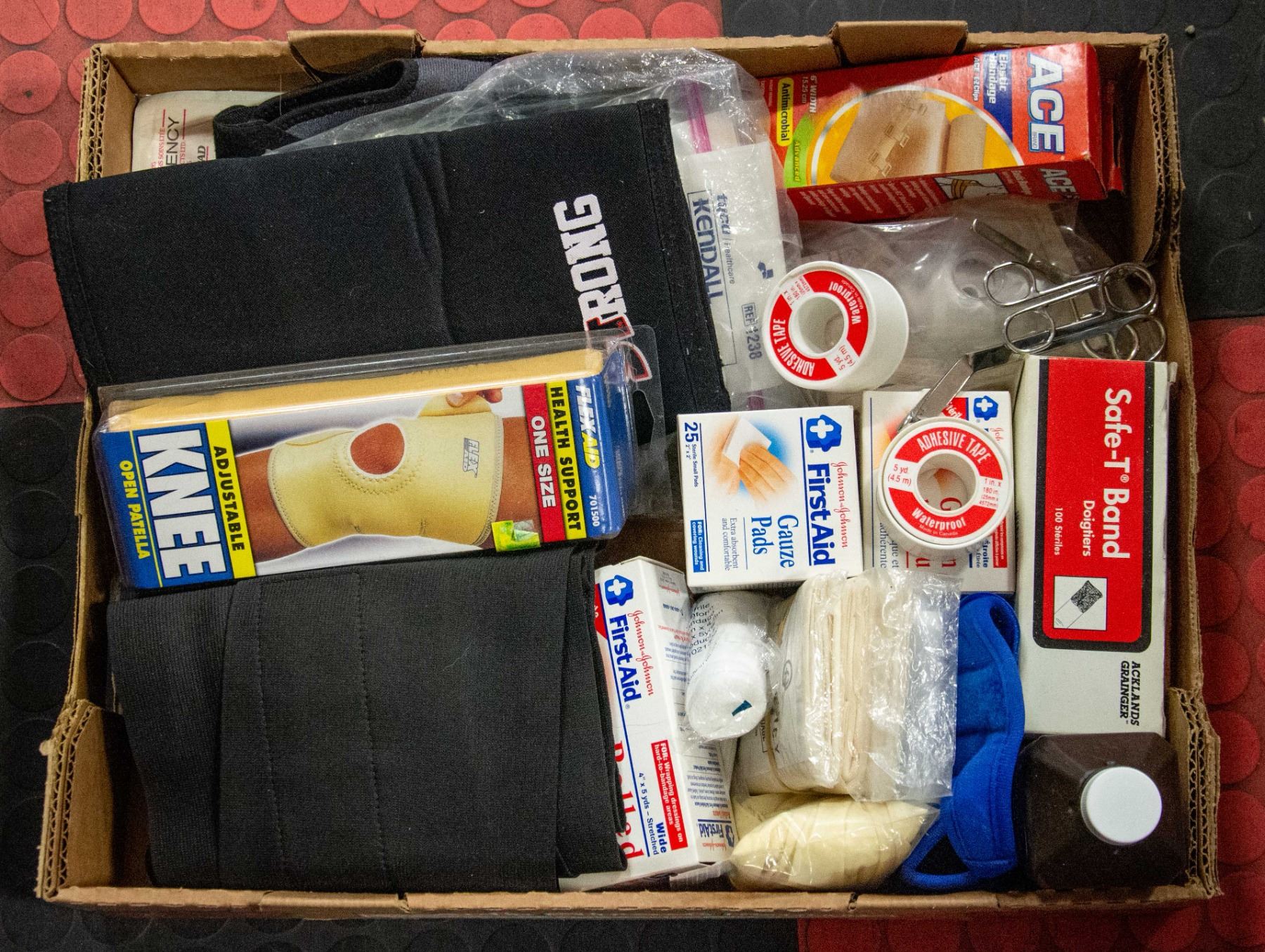 SUPPORT, GAUZE, ADHESIVE TAPES, HYDROGEN PEROXIDE, ELASTIC BANDAGE, RUBBER GLOVES & MORE