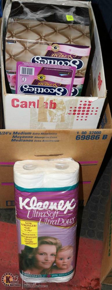 LARGE LOT OF KLEENEX AND TOILET PAPER