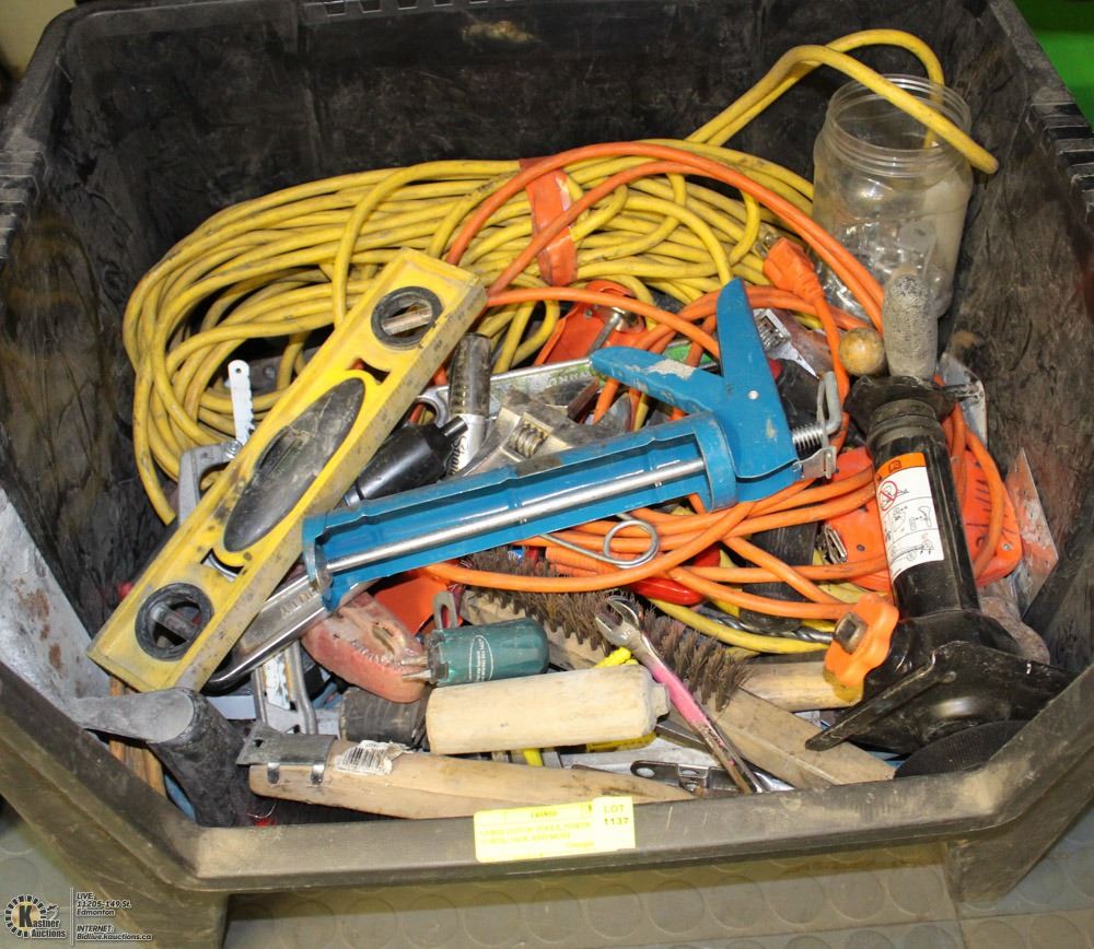 LARGE LOT OF TOOLS, POWER CORDS, JACK AND MORE