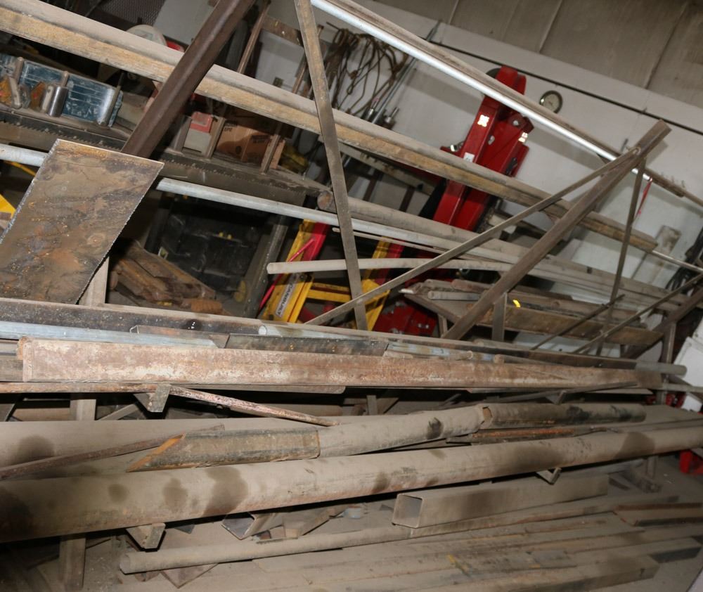 LARGE METAL STAND WITH ASSORTED SCRAP STEEL