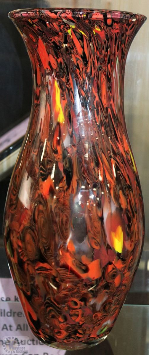 LARGE MULTI COLOR ART GLASS VASE 18 H