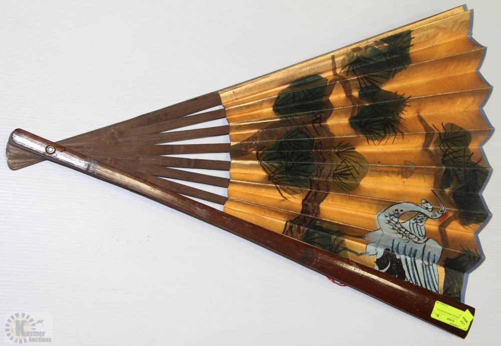 LARGE ORIENTAL HAND PAINTED HAND FAN