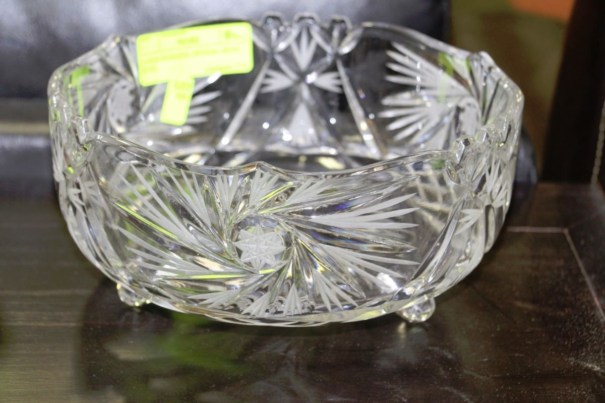 LARGE PINWHEEL CRYSTAL FRUIT FOOTED BOWL