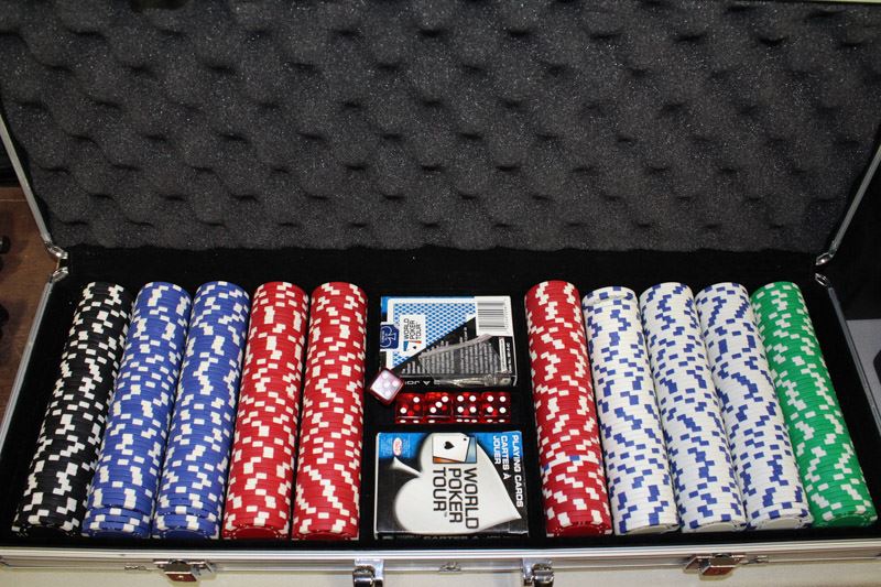 LARGE POKER CHIP SET W/ CARDS IN METAL CASE