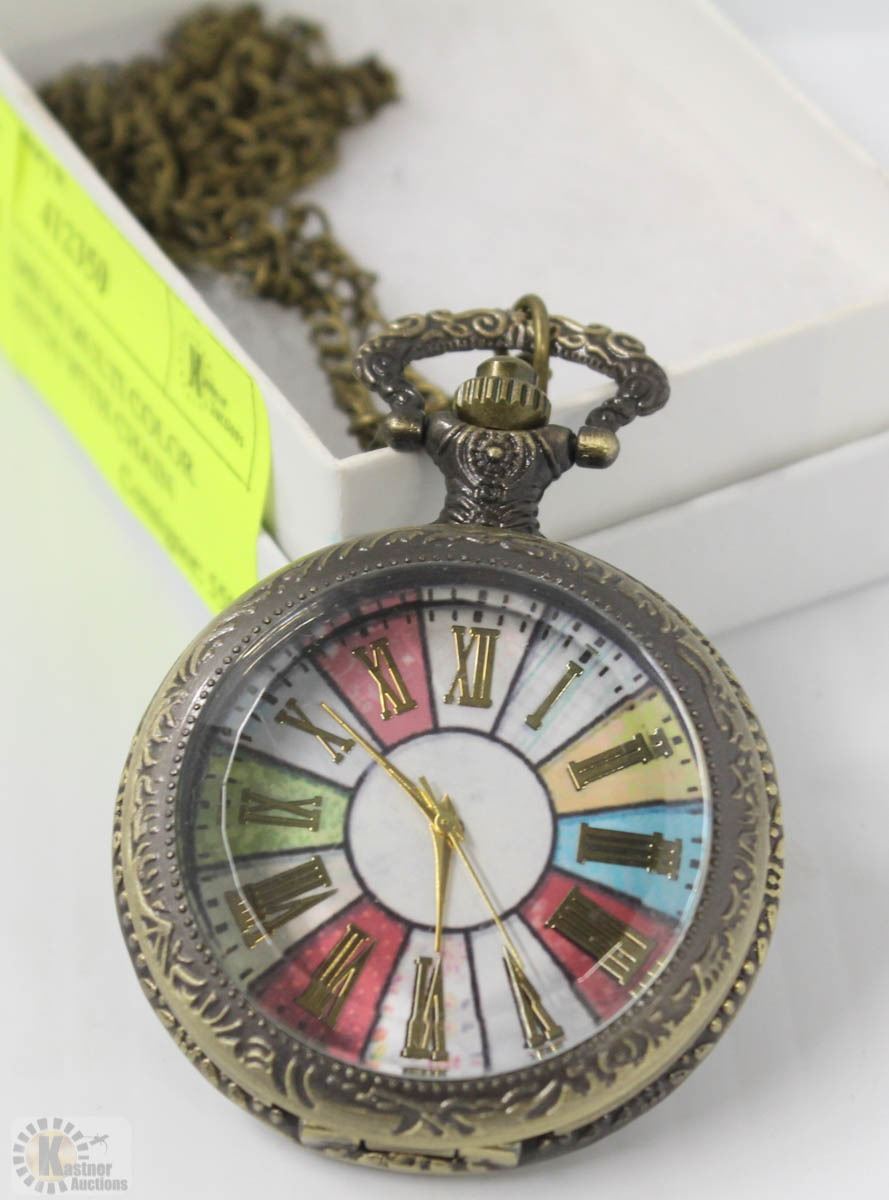 LARGE PREMIUM MULTI COLOR POCKET WATCH WITH CHAIN
