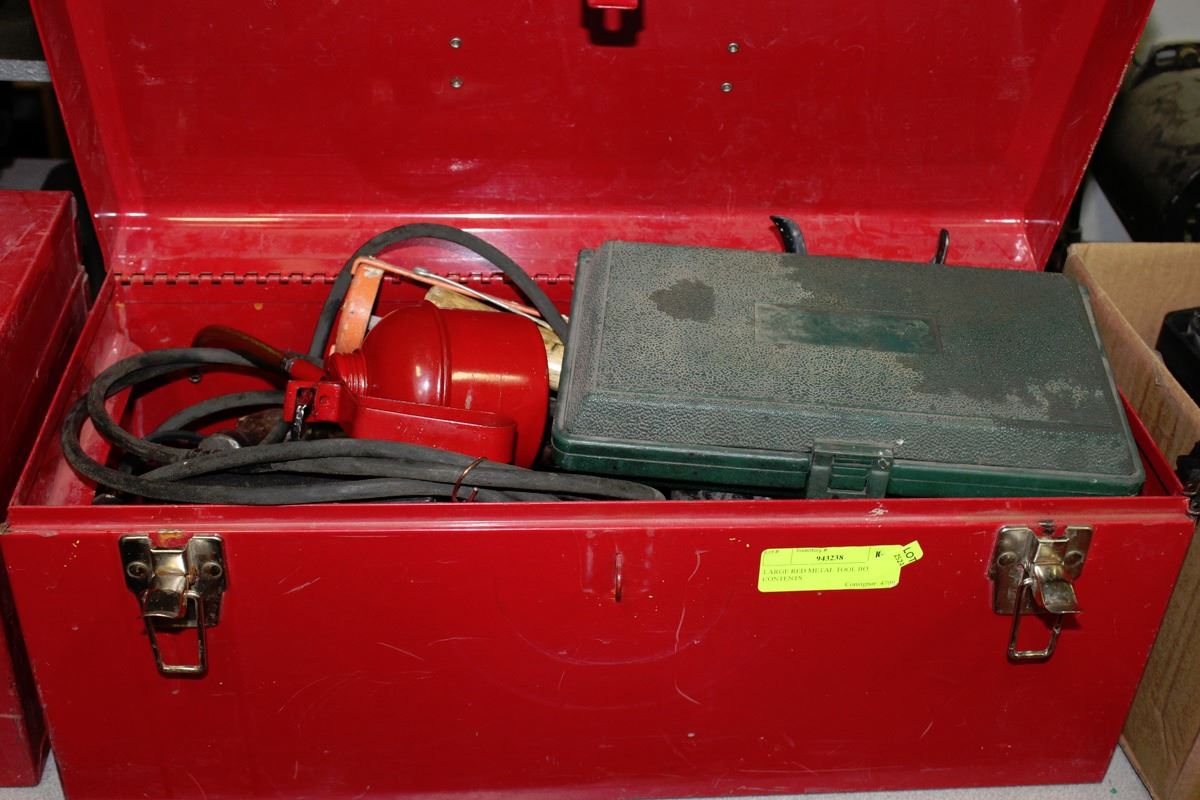 LARGE RED METAL TOOL BOX WITH CONTENTS