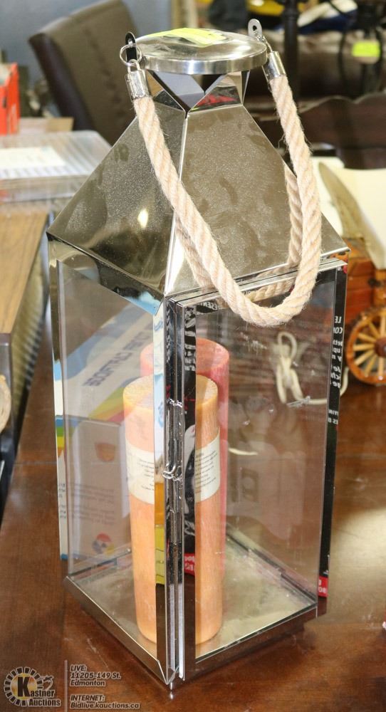 LARGE SILVER CANDLE LANTERN WITH 2 CANDLE