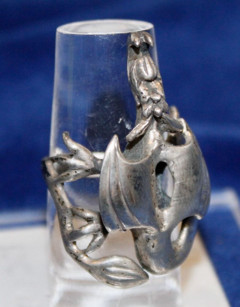 LARGE STERLING SILVER DRAGON RING ARTIST MADE